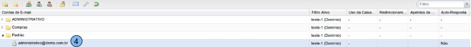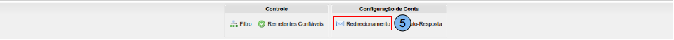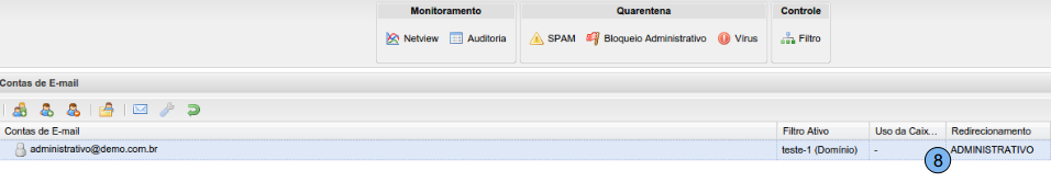 Na página onde são exibidas as contas de e-mails é possível visualizar os redirecionamentos da conta virtual (8).